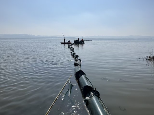 (1) 浮遊:高密度ポリエチレン (HDPE) の泡のコラーが強化された袖にしっかりと収納されています.カーテン を 垂直 に し て,水 の レベル を 正確 に 維持 する 信頼 できる 浮気 力流れの中でも